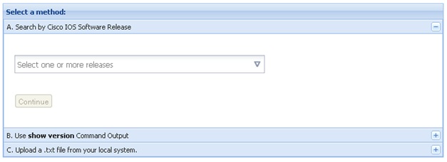 بخش دیگری در وب سایت سیسکو وجود دارد که میتوانید با استفاده از آن حفره های موجود بر روی محصول جاری خود را شناسایی کنید . این کار با دادن شماره نسخه IOS موجود امکان پذیر است . برای این کار به آدرس زیر مراجعه کنید