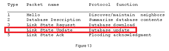 همان طور که می دانیم در OSPF ، میتوانیم 5 نوع Type مختلف داشته باشیم که همانطور که پیش تر توضیح داده شد ، در اینجا قصد بررسی ساختار LS update را داریم .در شکل زیر انواع Type های مختلف OSPF را مشاهده می کنید.